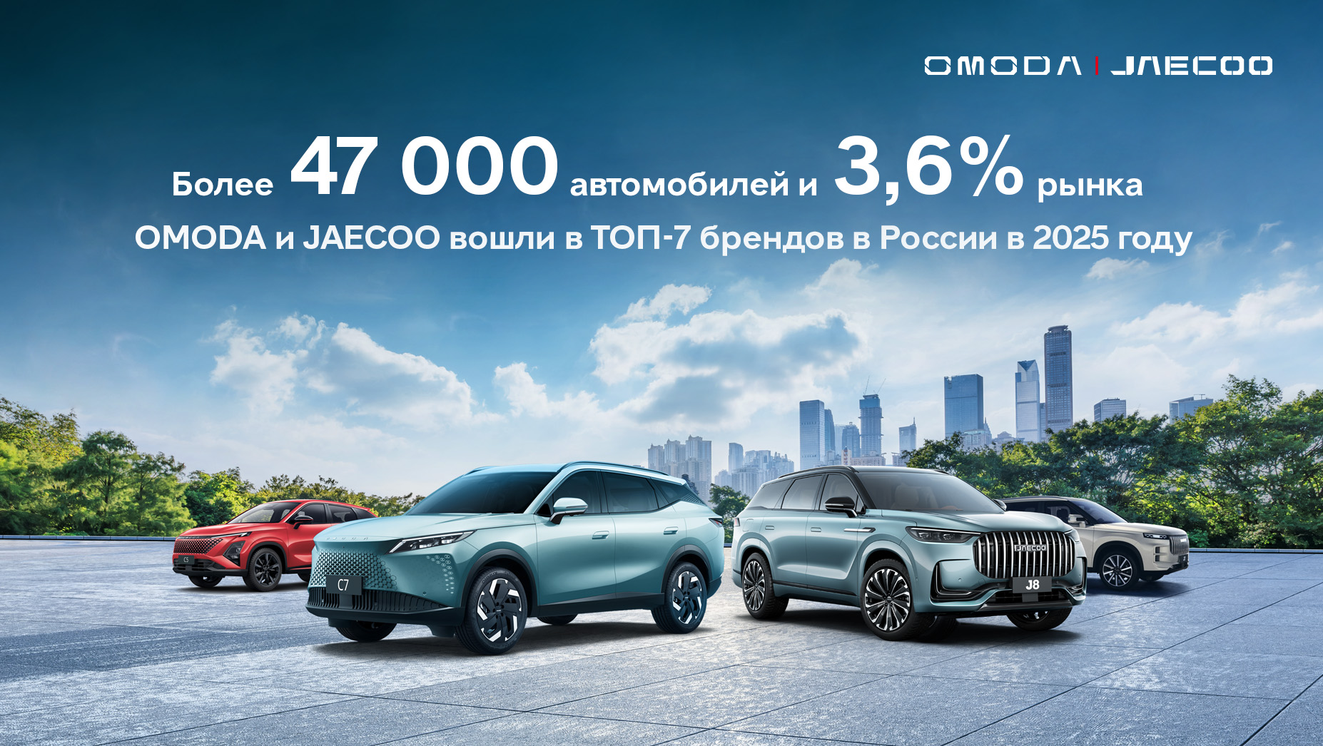 Бренды OMODA и JAECOO делятся результатами успешной работы на российском рынке в 2025 году. По итогам года было реализовано 47 543 автомобиля, что позволило брендам занять 7 место в общем рейтинге с совокупной долей рынка 3,6%.